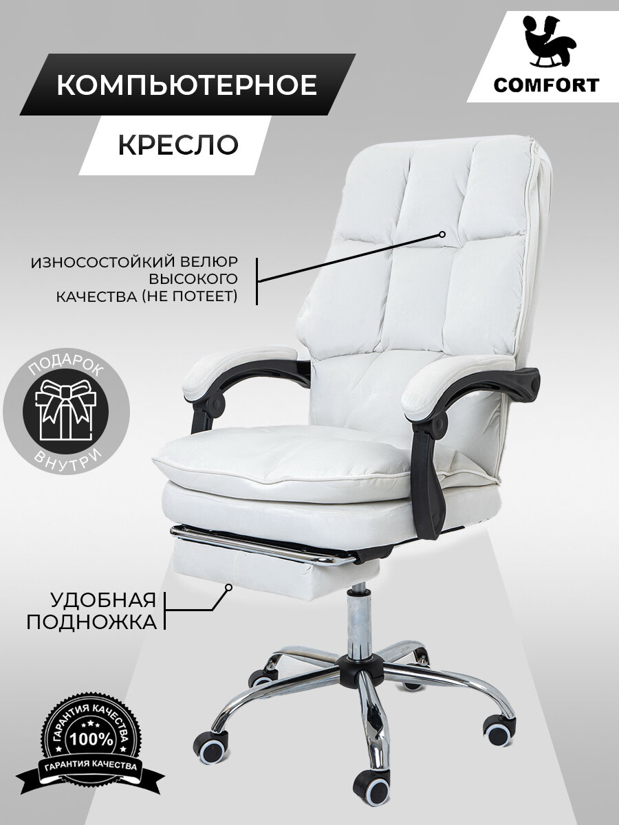 Компьютерное офисное мягкое кресло белое велюр информация: