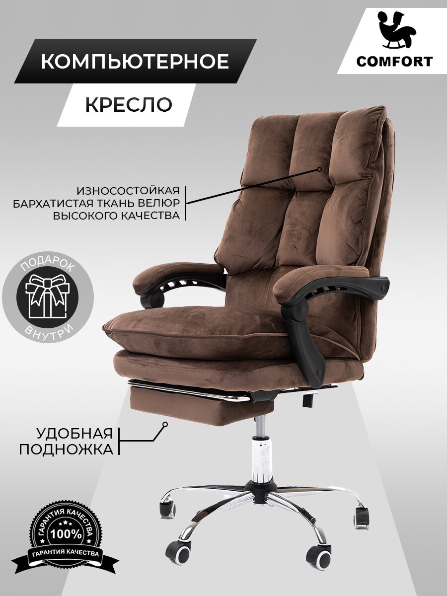 10 цен на Компьютерное офисное мягкое кресло коричневое велюр
