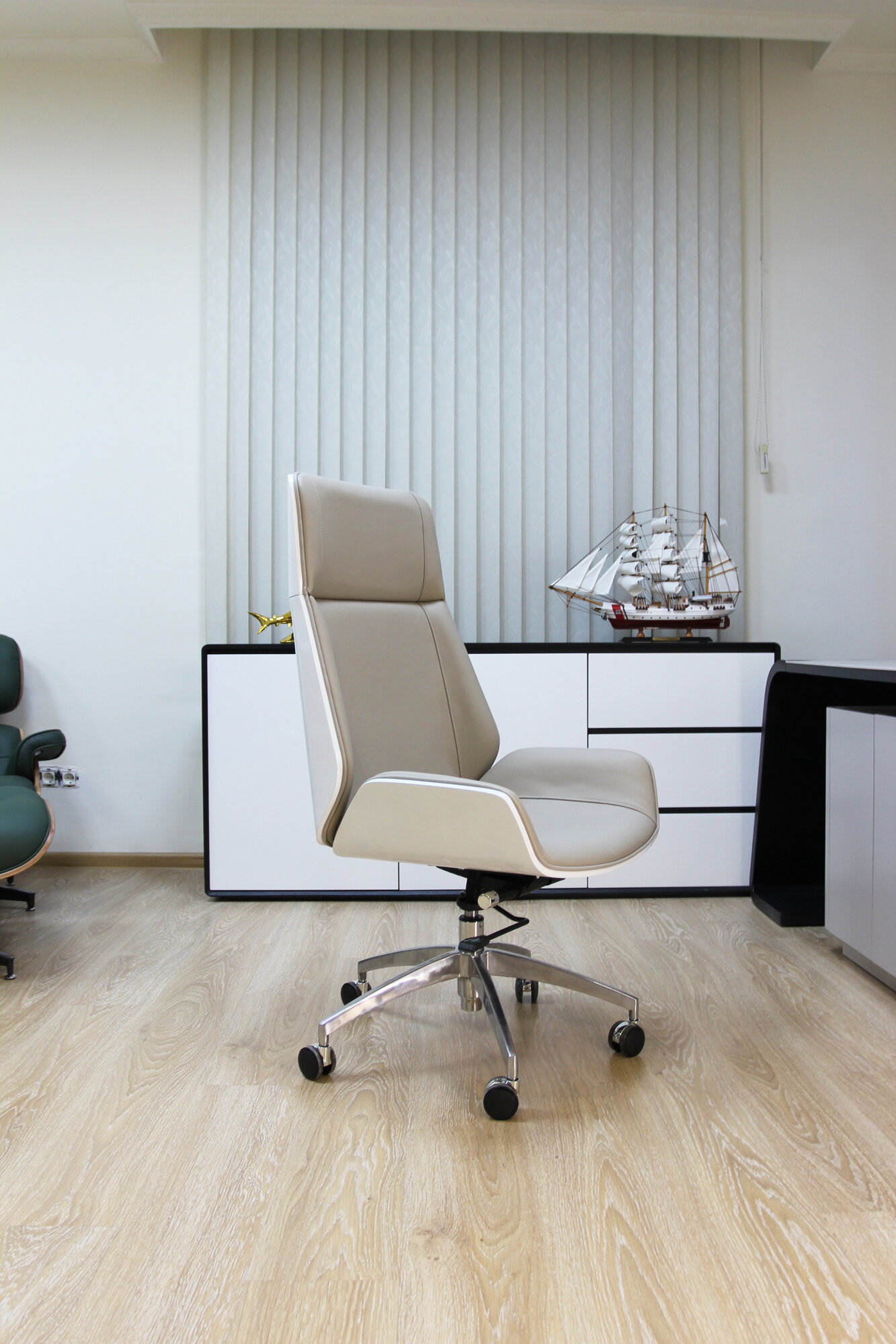 Отзывы на Norden Patio кресло руководителя (цвет: серый, с белой глянцевой спинкой, натуральная кожа )
