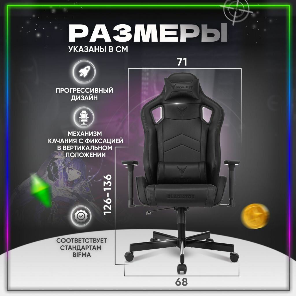Кресло компьютерное игровое офисное для геймеров Бюрократ с подголовником, экокожа информация: