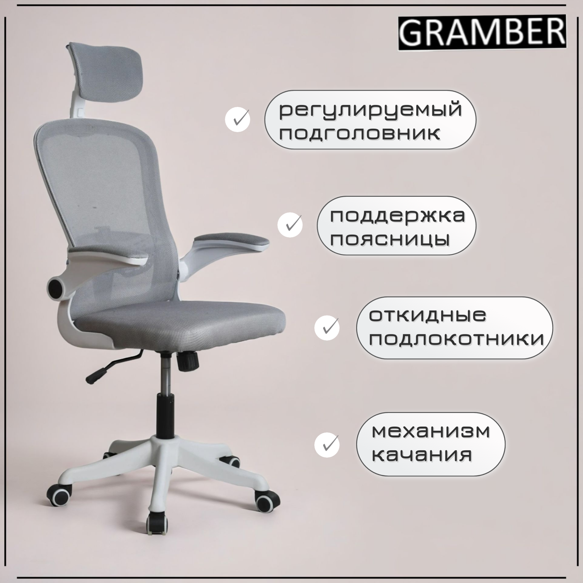 Отзывы на Кресло компьютерное GRAMBER C06, регулировка, сетка/текстиль, серое/белое