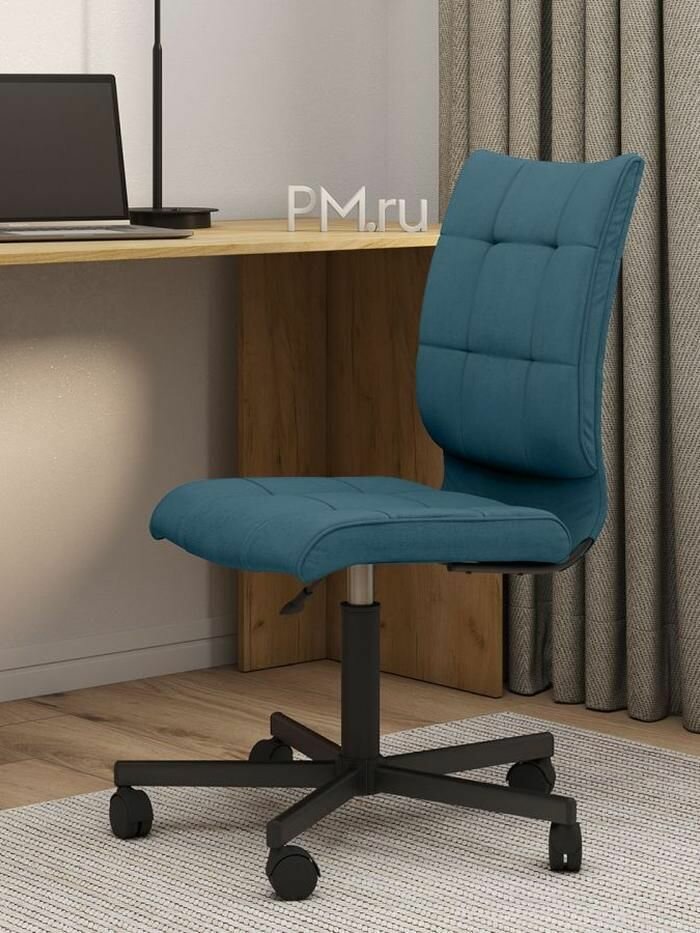 10 цен на Офисное кресло Саймон на колесиках, с регулировкой по высоте, без подлокотников 43х43х101 см, Бирюзовый, велюр