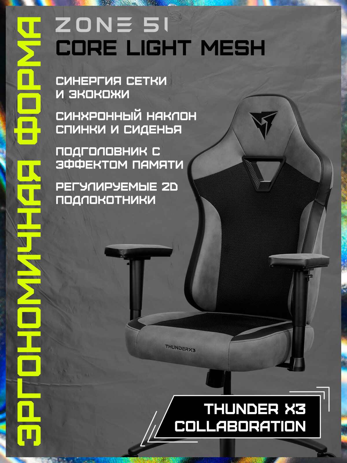 Кресло компьютерное ZONE 51 CORE Light Mesh Black (ThunderX3 Collaboration) информация: