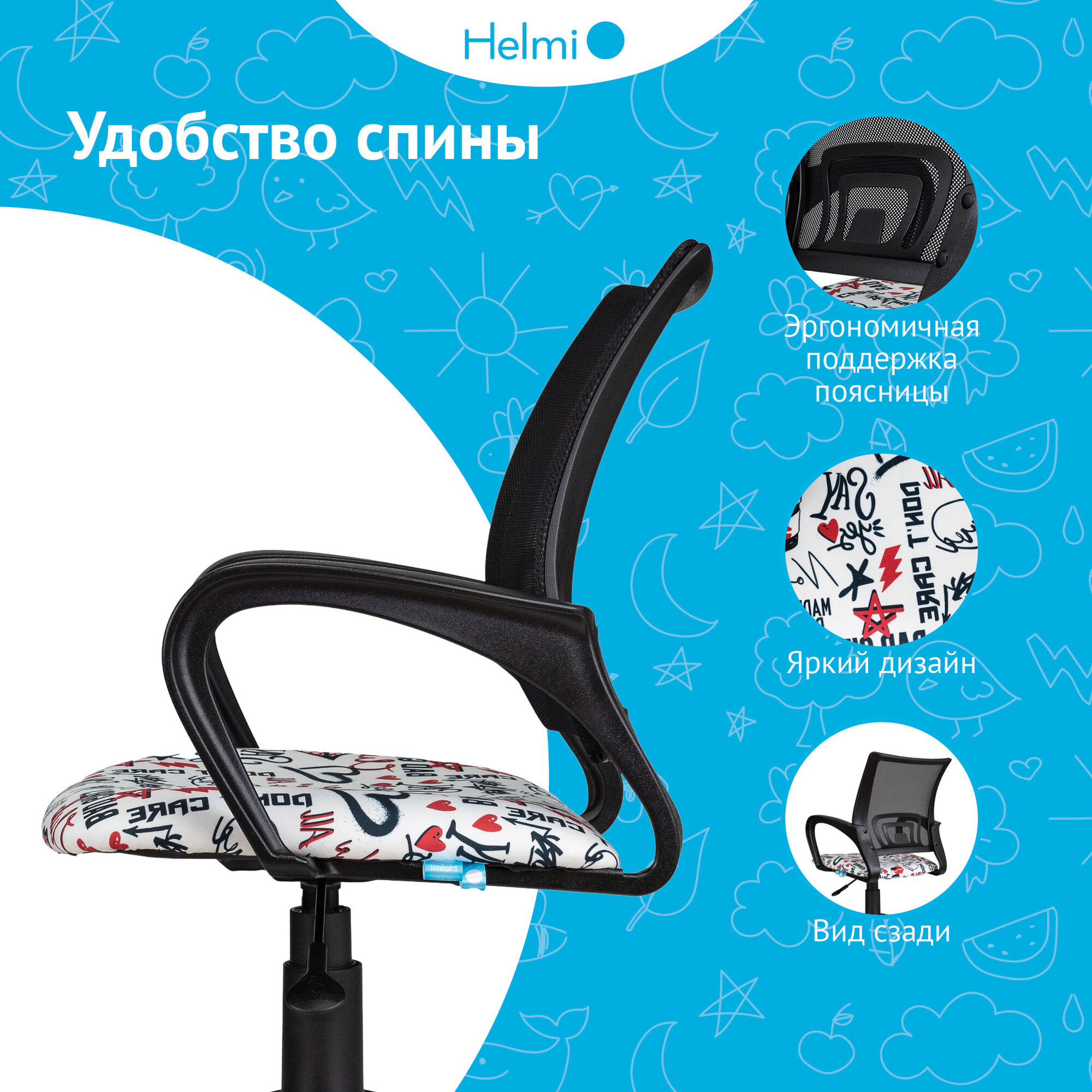 10 цен на Кресло детское Helmi HL-K95 R (695) "Airy", спинка сетка черная/сиденье ткань с рисунком red lips, пиастра