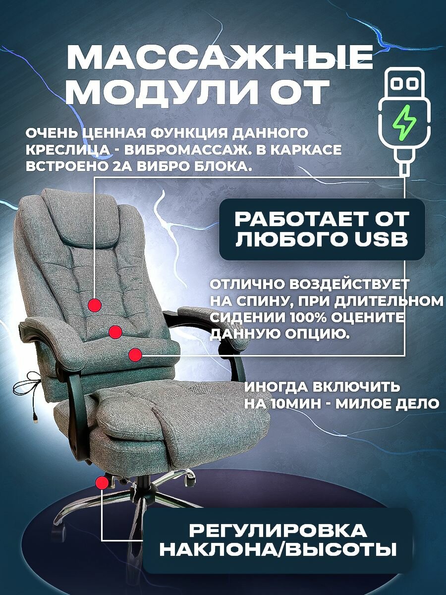 Офисное кресло, Кресло руководителя. Вибромассаж. Геймерское кресло. Удобное. Модель 606. Кресло тканевое компьютерное информация: