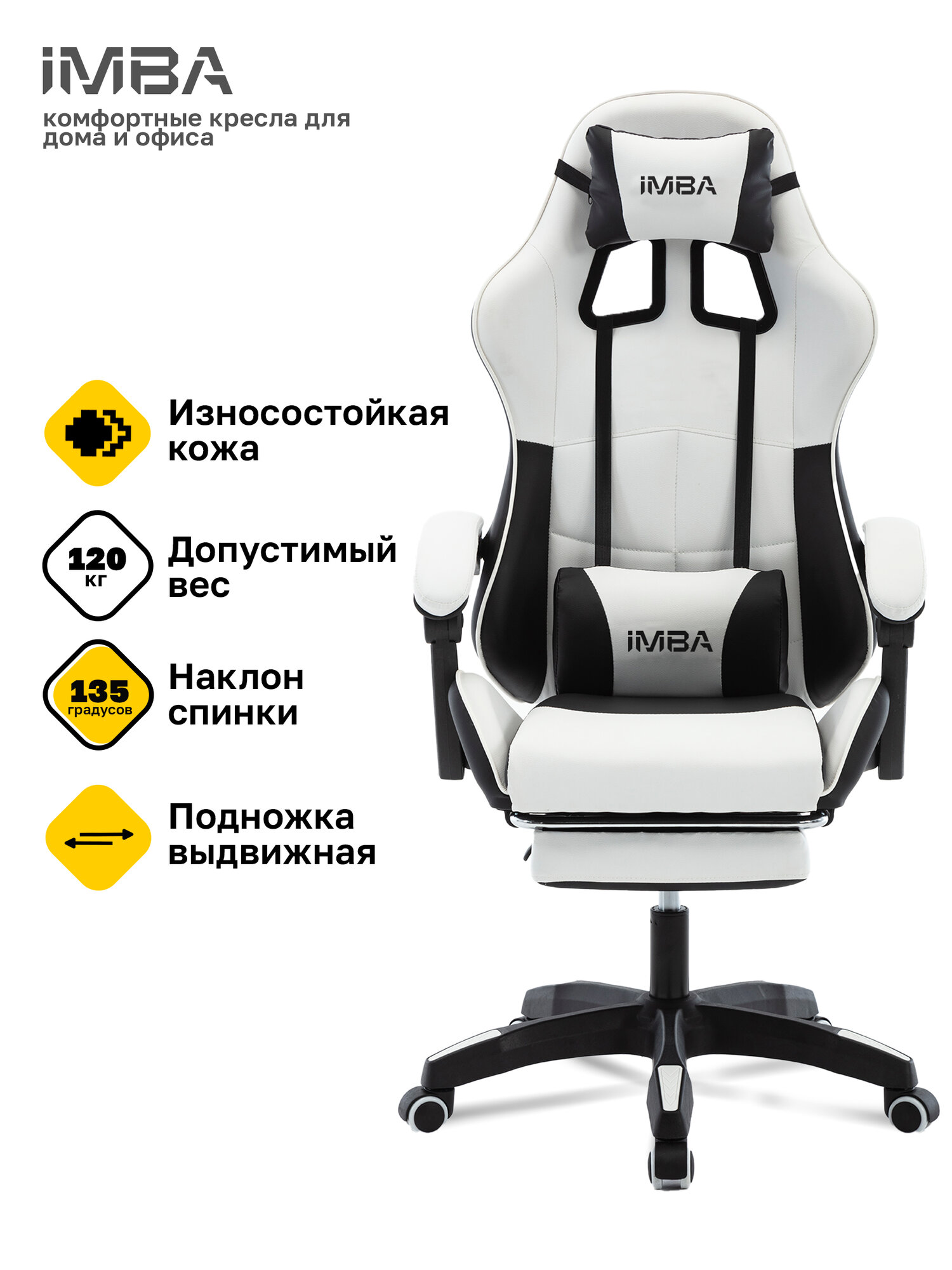 Кресло компьютерное игровое IMBA, геймерское эргономичное, экокожа, до 120кг, с подставкой информация: