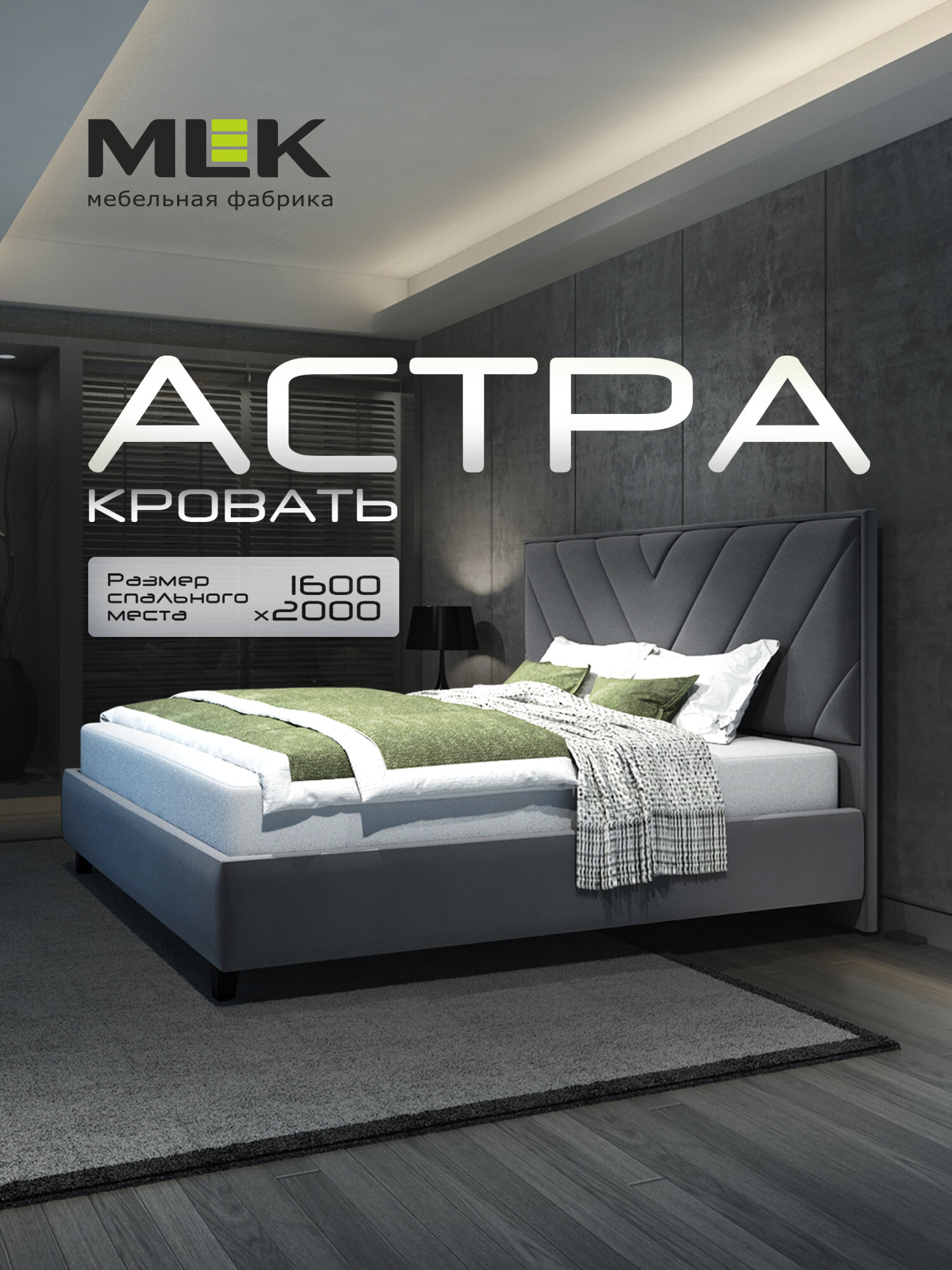 Кровать MLK Астра 1600 нео 25, двуспальная, с мягким изголовьем. информация: