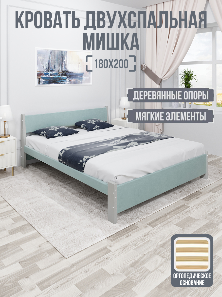 10 цен на Кровать Solarius "Мишка", двуспальная, ортопедическая, велюровая обивка, цвет Тиффани