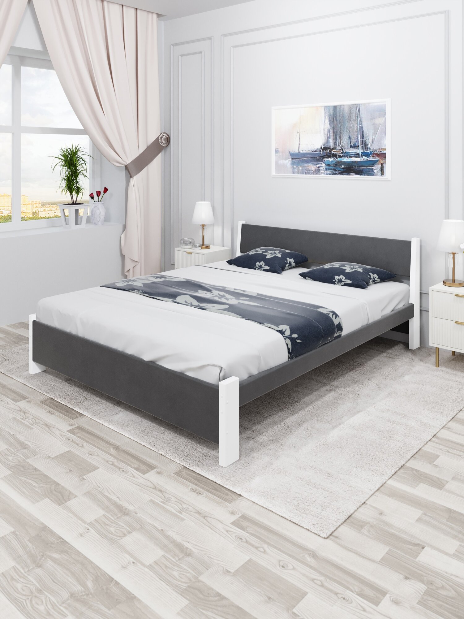 Кровать Скайс ящиками белый текстурный, 140х200 см