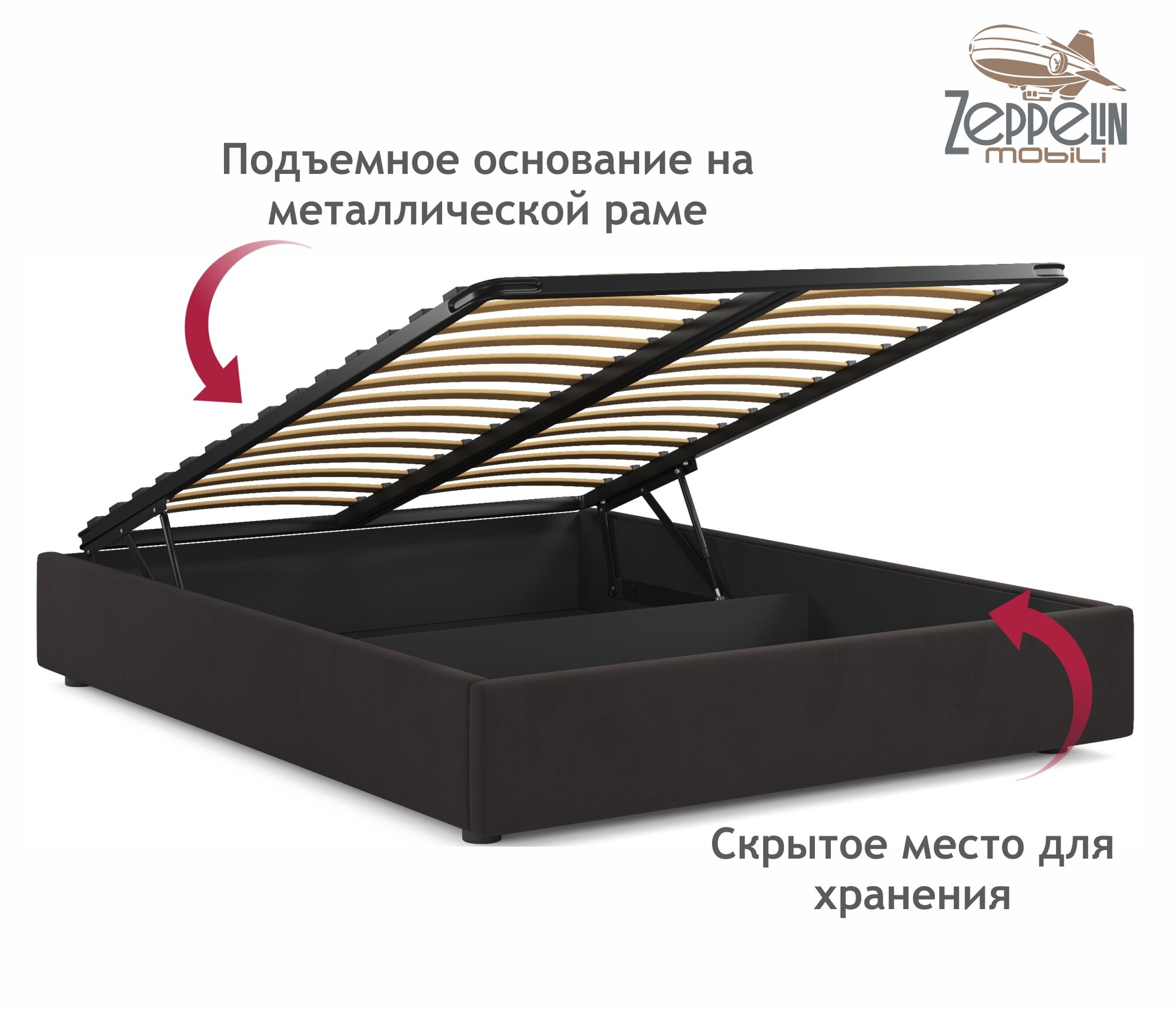 Отзывы на Кровать-софа Base 160x200 без изголовья с подъемником и ящиком Zeppelin Mobili мягкая двуспальная из коричневого велюра