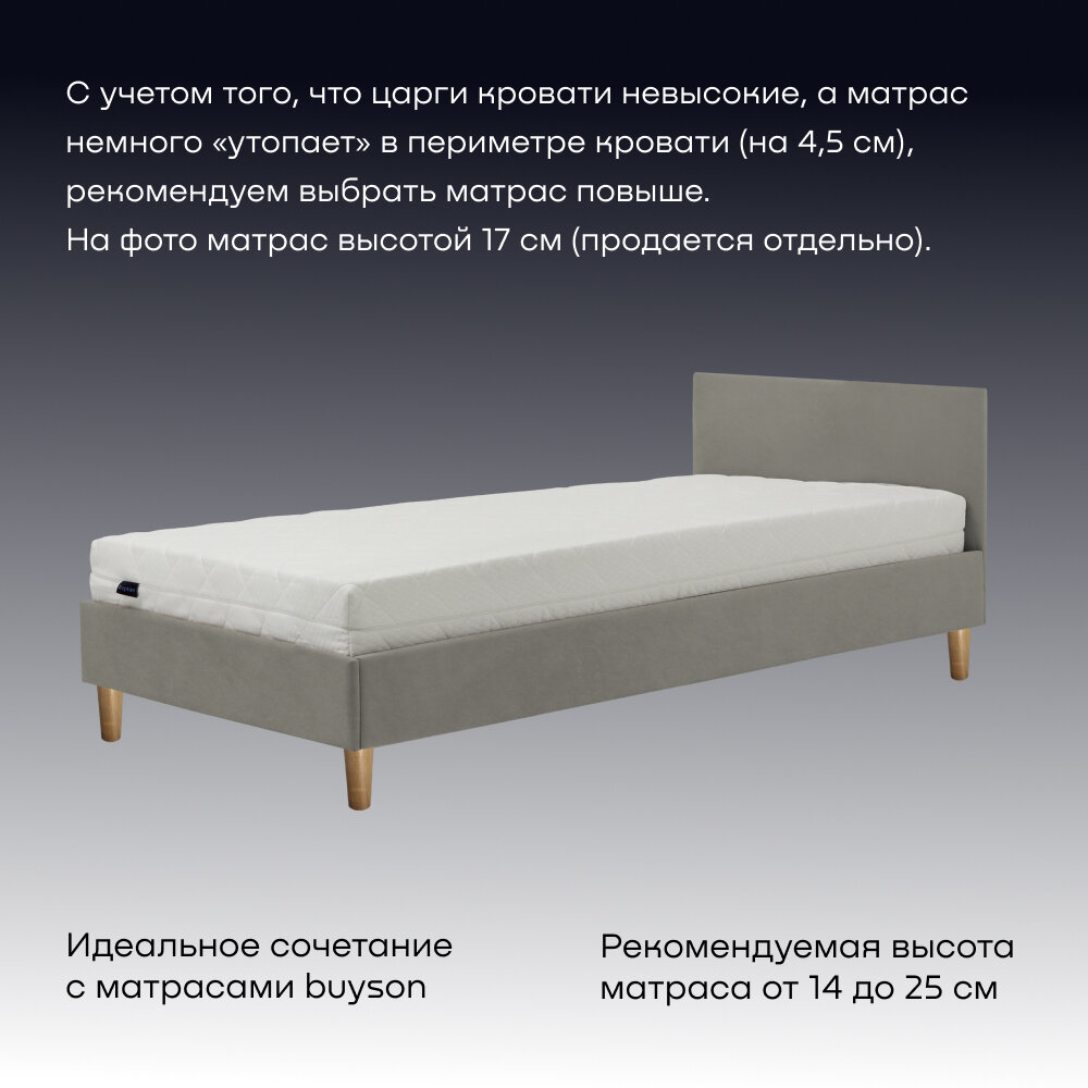 Отзывы на Односпальная кровать buyson BuyStyle 200х90 см, микровелюр, светло-серый