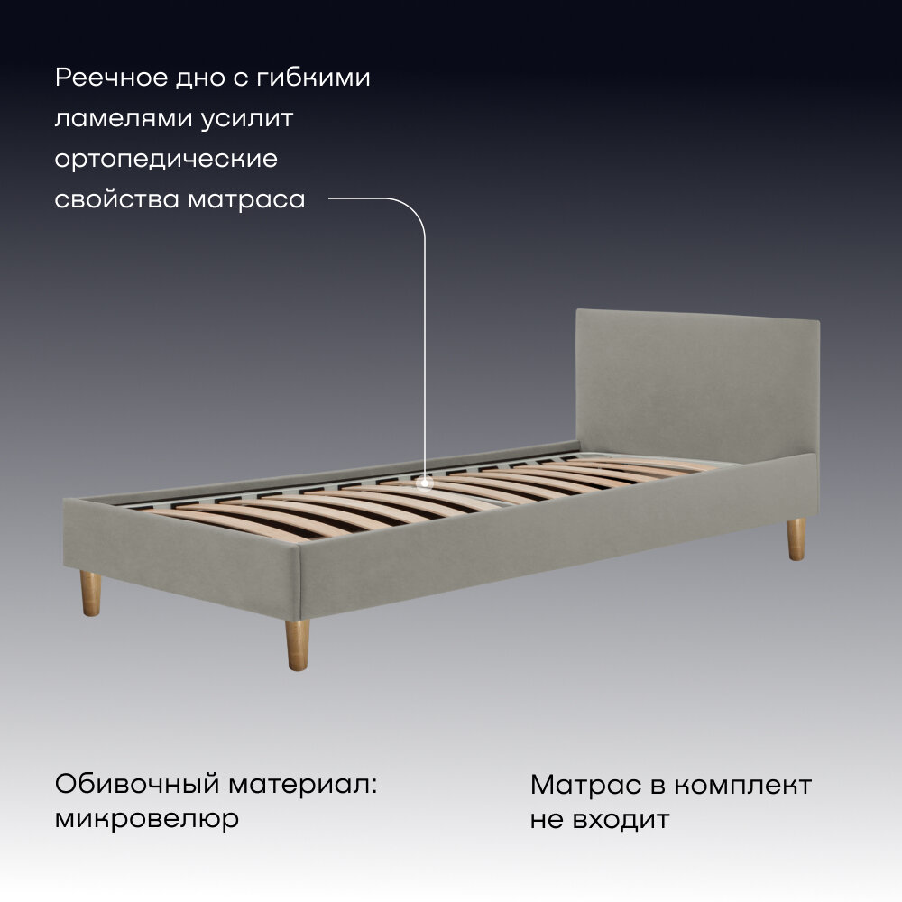 Односпальная кровать buyson BuyStyle 200х90 см, микровелюр, светло-серый информация: