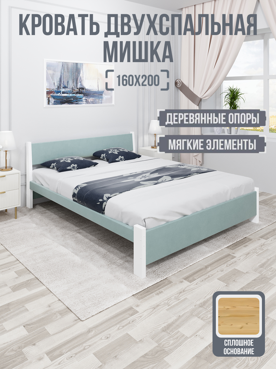 Кровать Solarius "Мишка", массив сосны, двуспальное, мягкая обивка, 160x200x80 см информация: