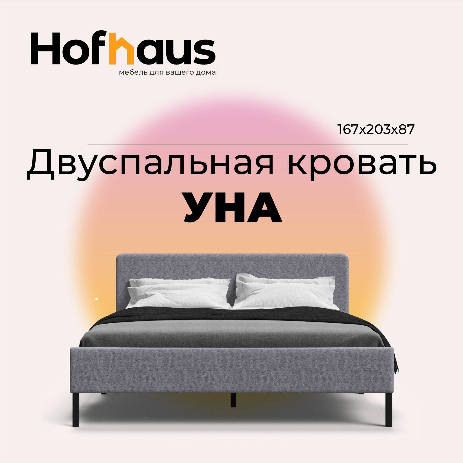 Отзывы на Двуспальная кровать УНА, рогожка Malmo платина/черный, 160х200 см
