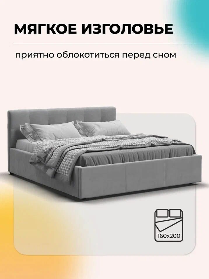 Отзывы на Двуспальная кровать Белла с подъемным механизмом, велюр Monolit сталь, 160х200 см