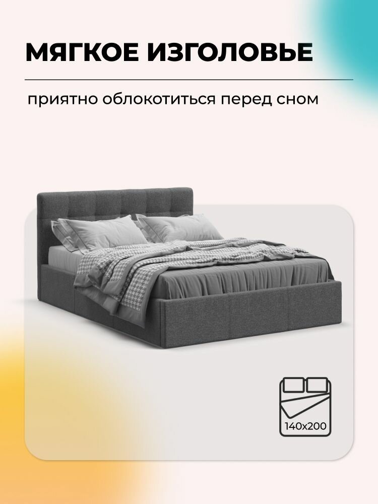 Двуспальная кровать Белла с подъемным механизмом, рогожка Malmo серый, 140х200 см 16 164 ₽