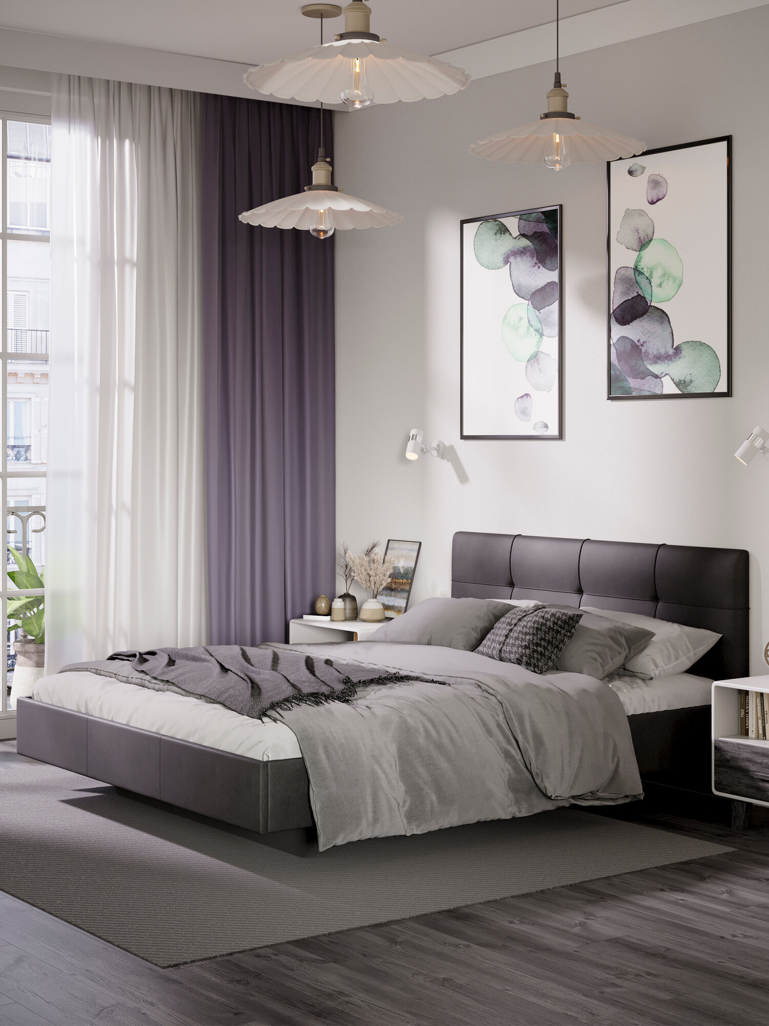 Кровать без ПМ «Элис» Тип 1 (без подъемного механизма) Исп.2 160x200 Велюр Графит информация: