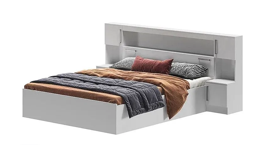 Кровать 1.6 с надстройкой с тумбами Бася 2335х1016х2229 мм Белая МИФ информация: