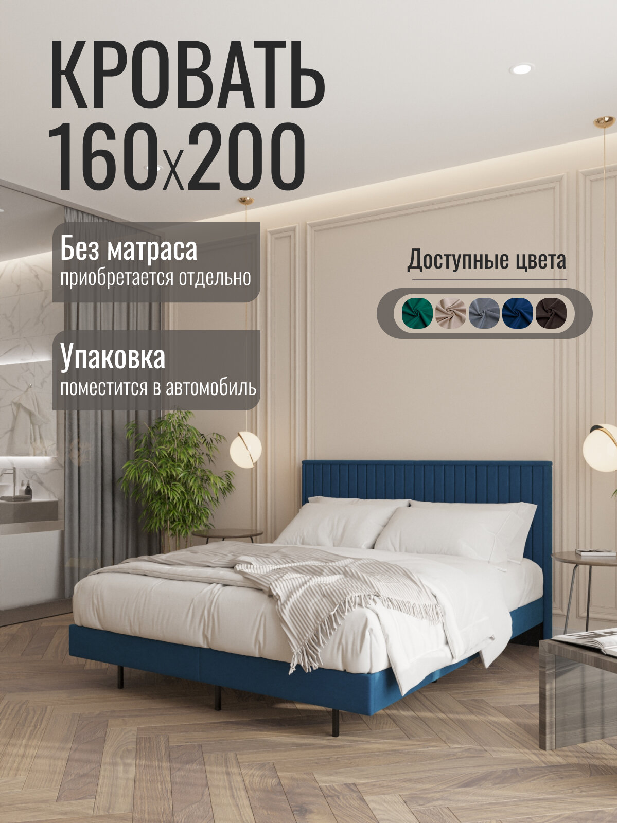 Кровать двуспальная Сонна велюр, синий, 160х200 см, Divan24 информация: