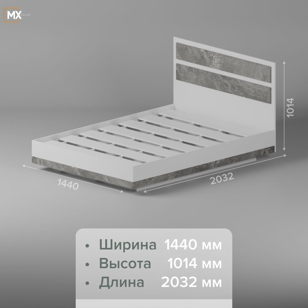 Риальто Кровать 1400 KR1400, Белый/Камень ЛДСП для спальни 1440х1014х2032, 1 шт информация: