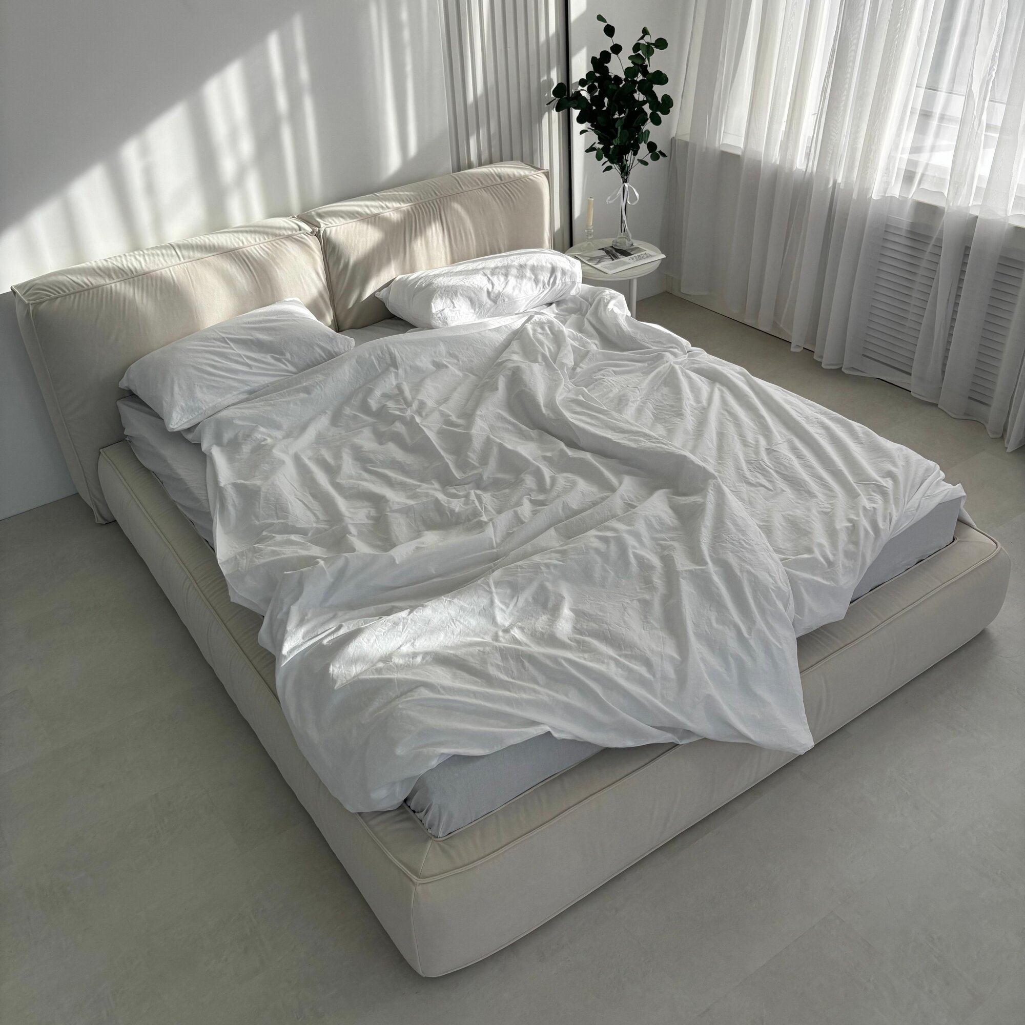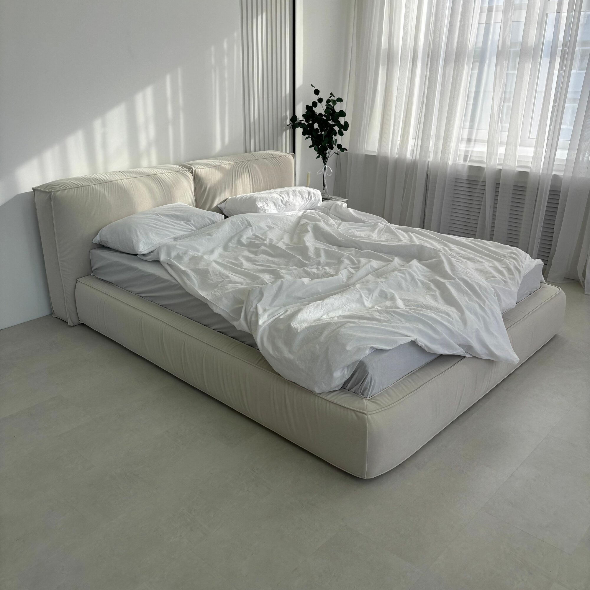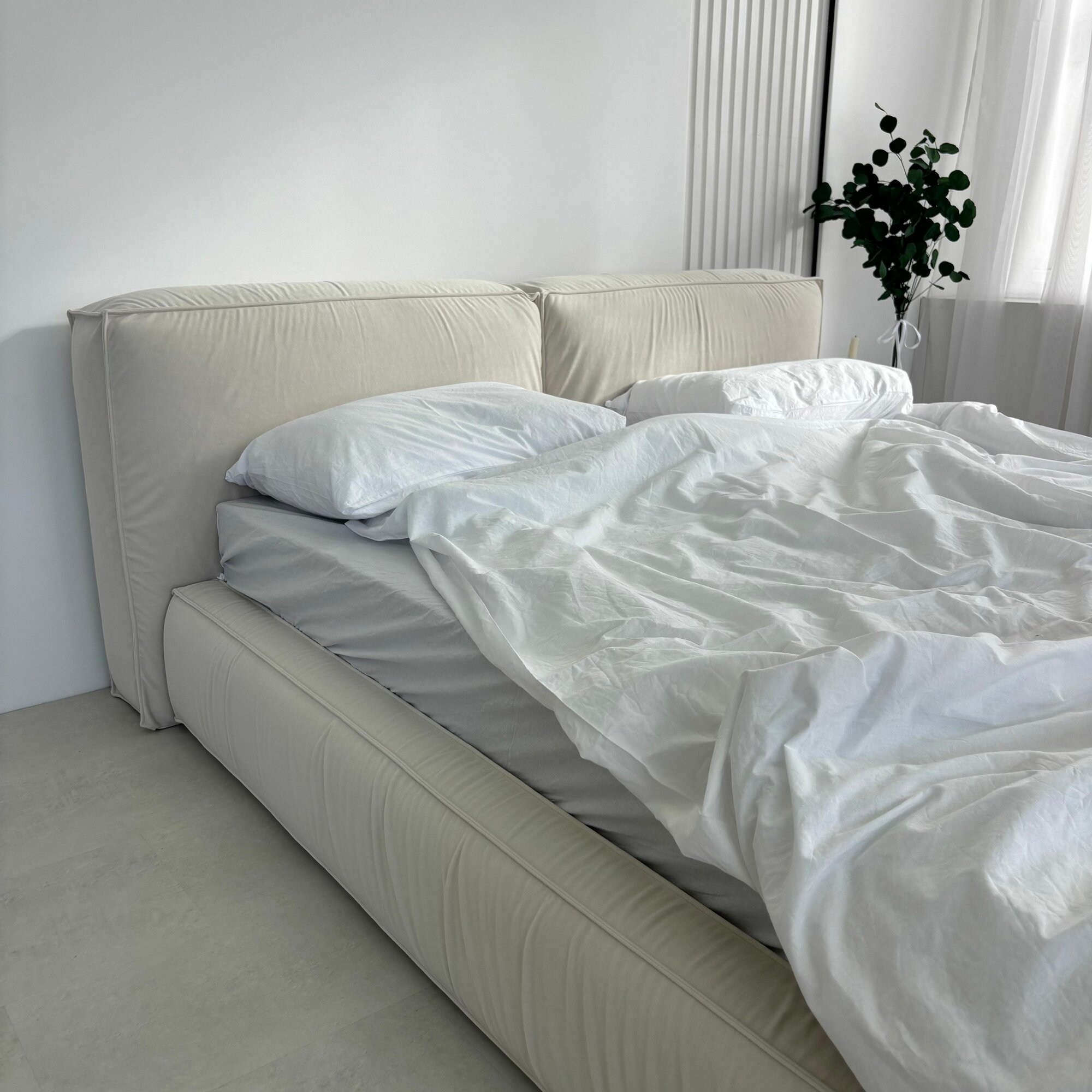 Мягкая кровать Субаку/Subaku 200х200 двуспальная, с ящиками и подъемным механизмом, бежевая (белая) 71 000 ₽