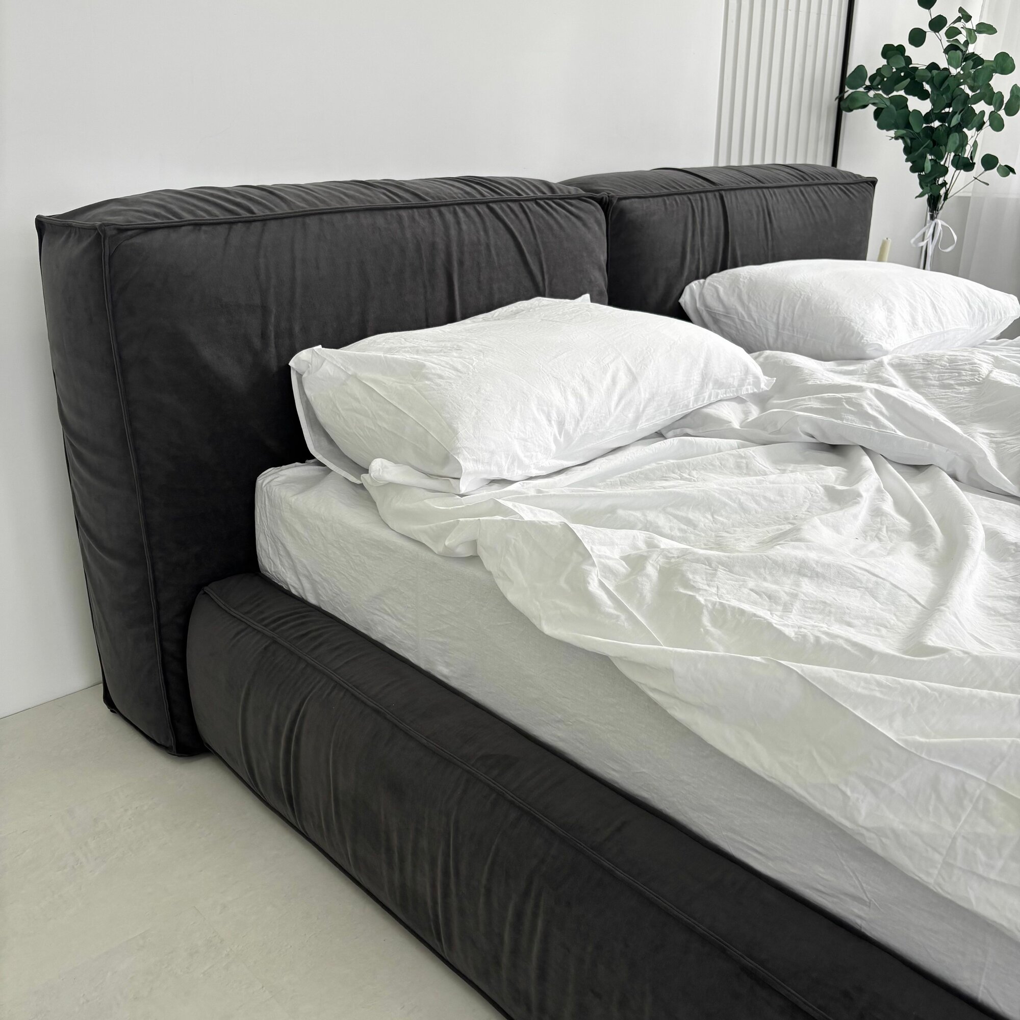 Кровать двуспальная «Онда» Банда мастеров, графит антивандальный велюр, 180x200см