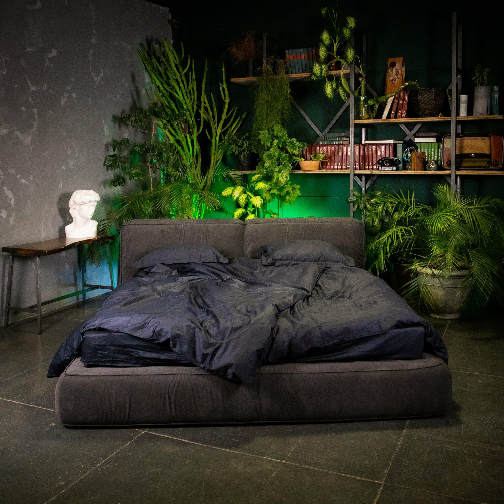 Мягкая кровать Субаку/Subaku 200х200 двуспальная, с ящиками и подъемным механизмом, графитовая (черно-серая) 71 000 ₽
