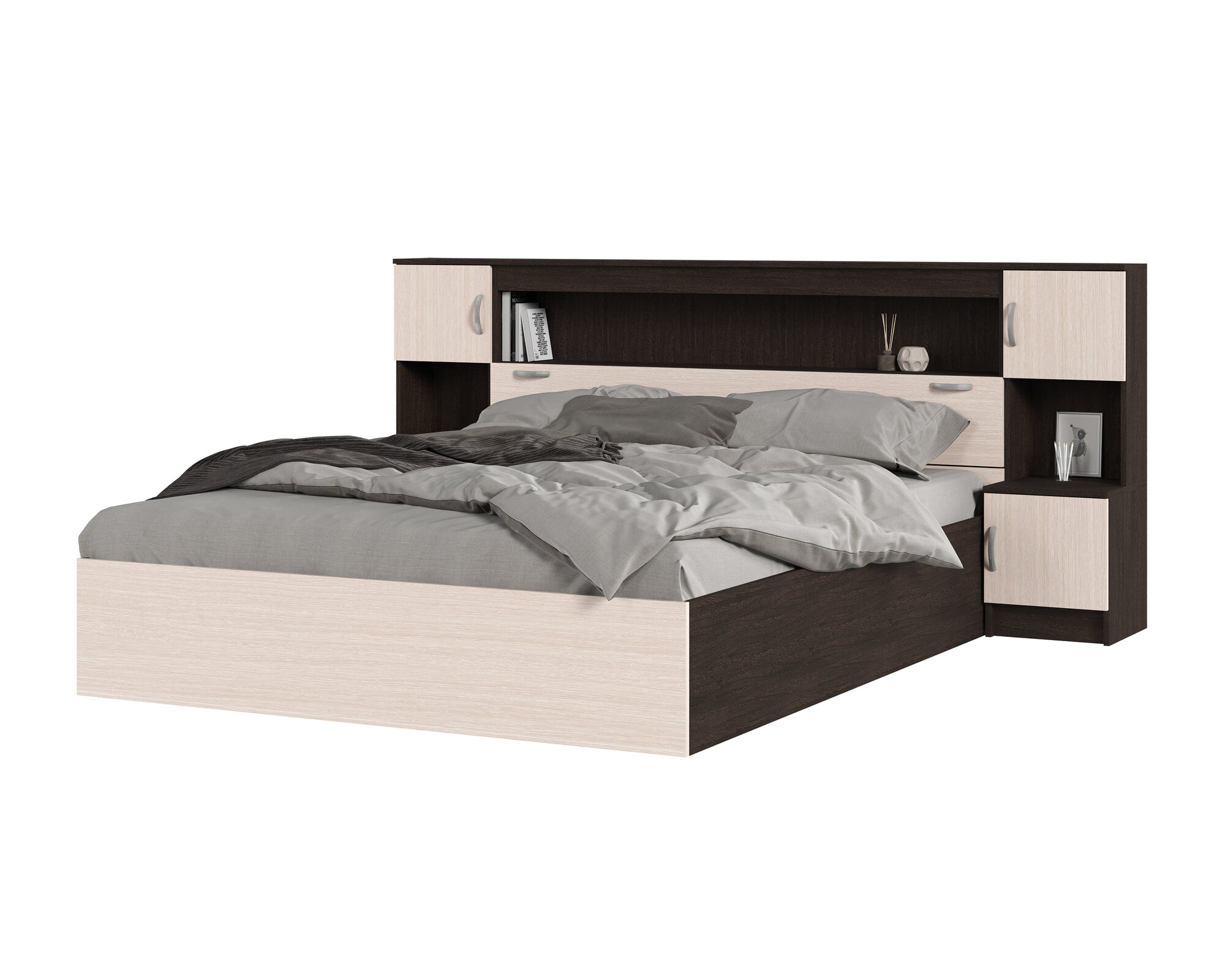 Кровать двухспальная 160х200 КР 552 Бася с закроватным модулем ЛДСП, цвет Венге-дуб белфорд Стендмебель информация: