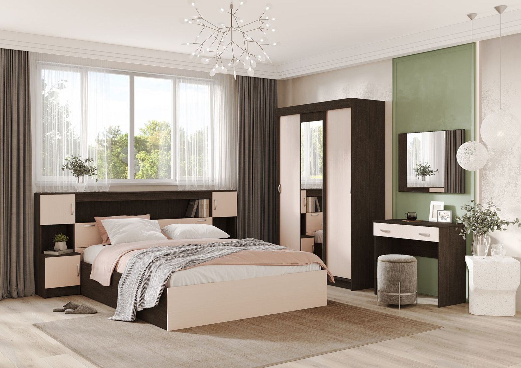 Кровать с закроватным модулем, габаритный размер: 2352x1024x2232 мм. Спальное место: 1600х2000 мм. Корпус: ЛДСП венге, фасад: ЛДСП дуб Белфорт 20 341 ₽