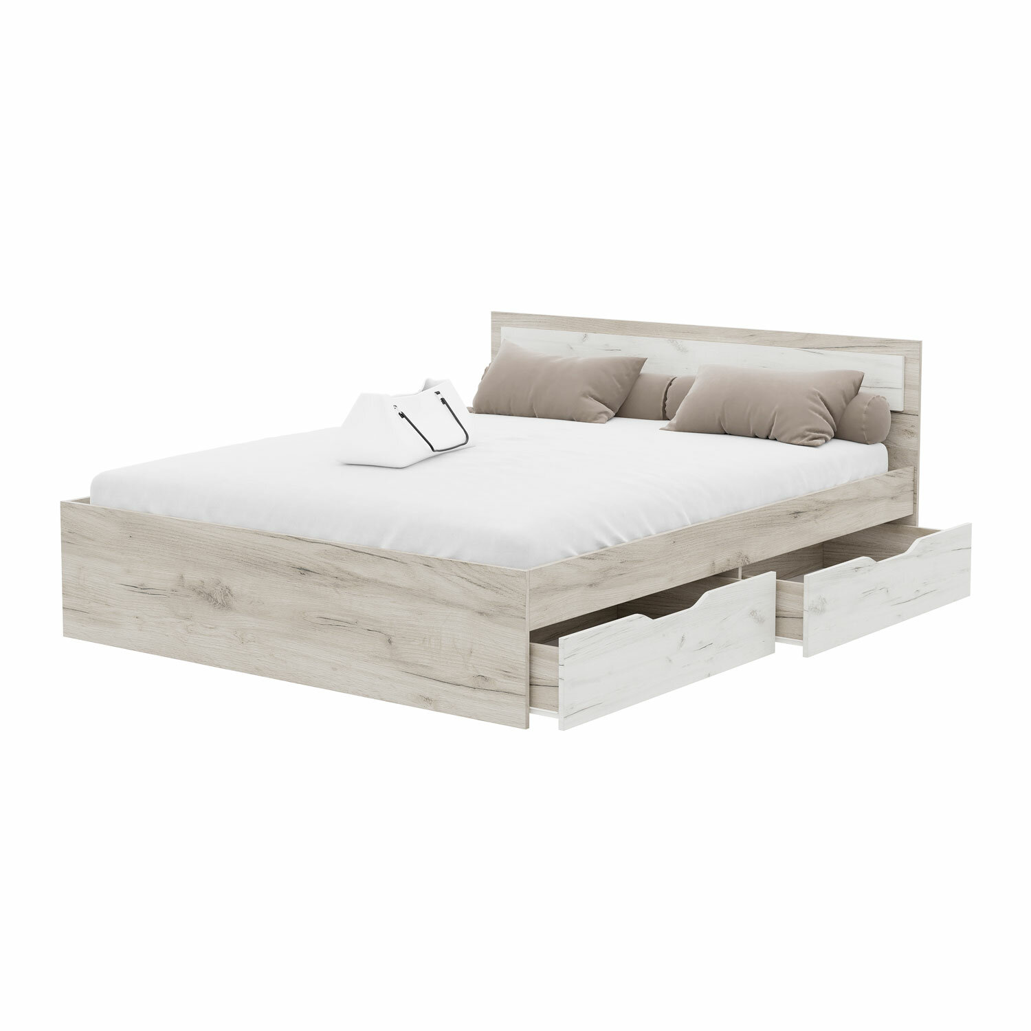 Кровать 160х200 двуспальная с ящиками, Гармония КР 604, Дуб Крафт Белый / Дуб Крафт Серый