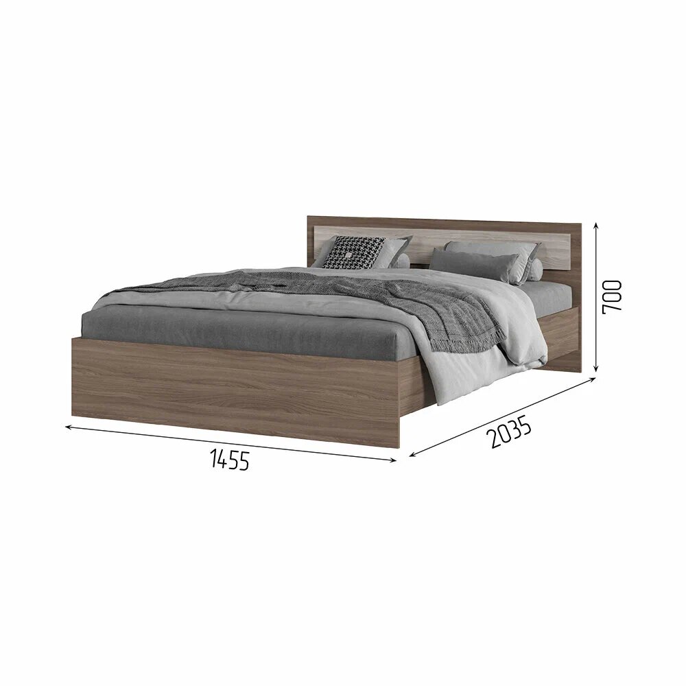 Кровать, габаритный размер: 1452x700x2032 мм. Спальное место: 1400х2000 мм. Корпус: ЛДСП венге, фасад: ЛДСП дуб Белфорт. 10 295 ₽