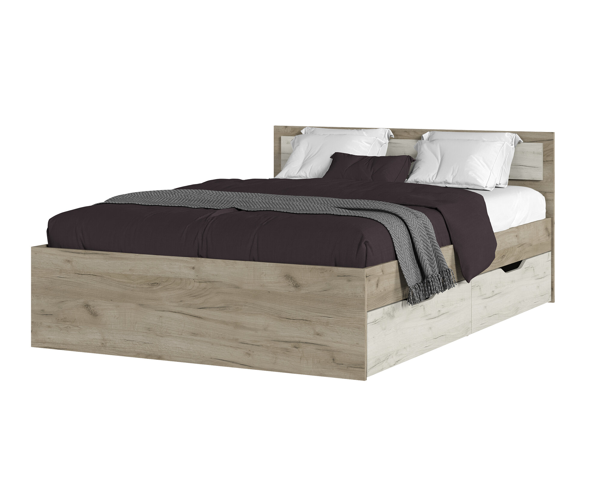 Кровать 160х200 двуспальная с ящиками, Гармония КР 604, Дуб Крафт Белый / Дуб Крафт Серый