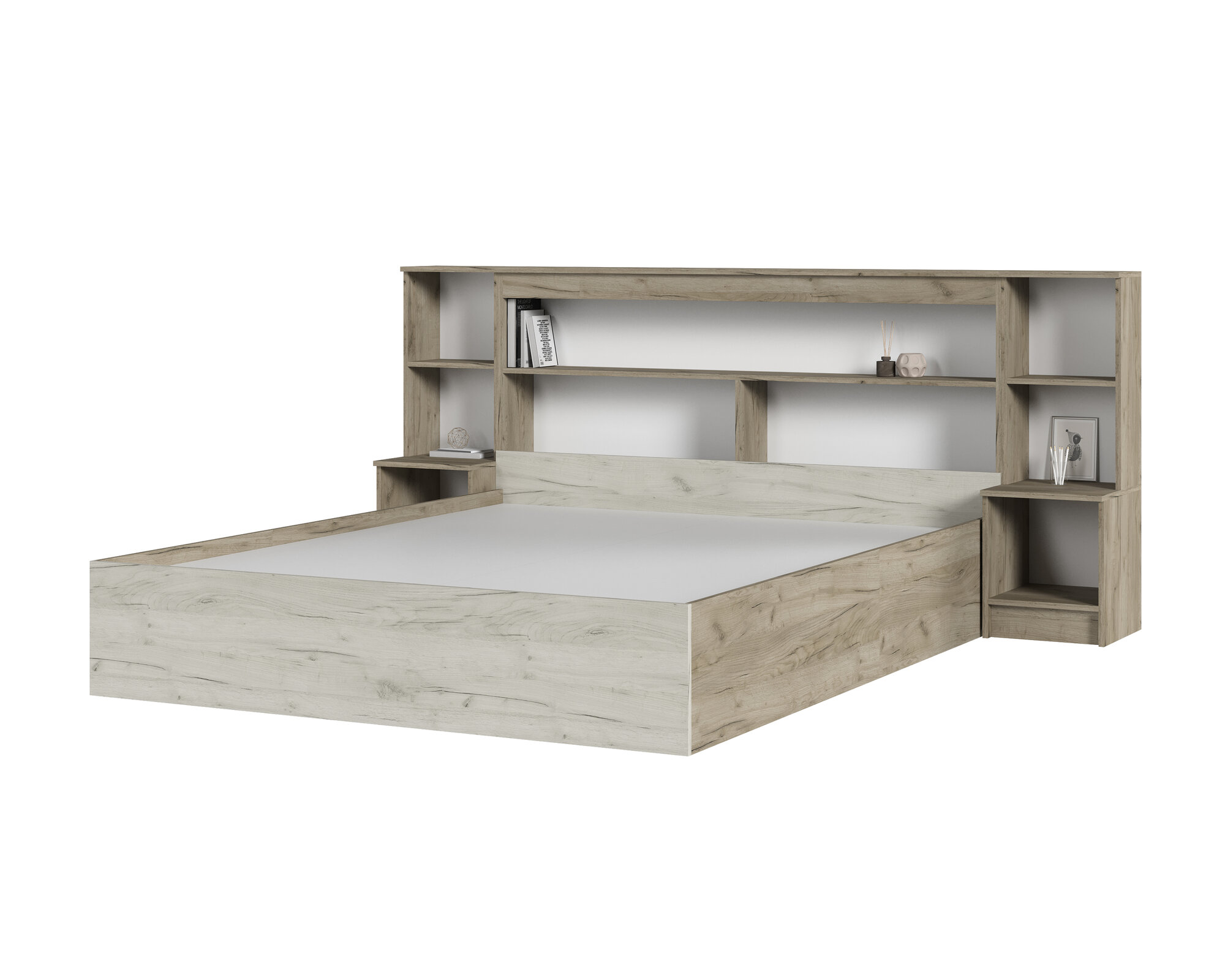 Кровать 160х200 двуспальная, Басса КР 558, Дуб Крафт Белый / Дуб Крафт Серый