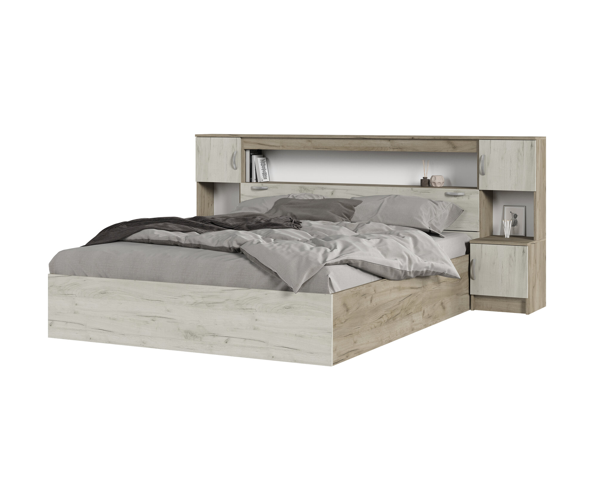 Кровать двуспальная Гармония КР 610 1,8, дуб крафт белый/дуб крафт серый 15 957 ₽