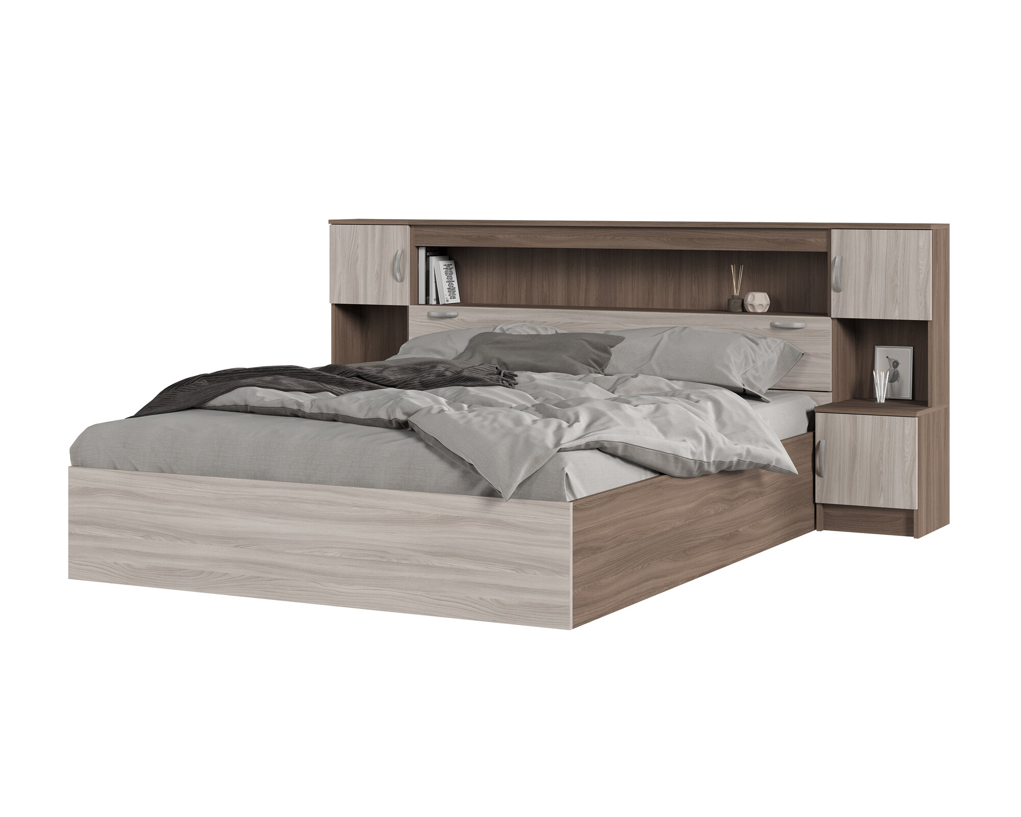 Кровать "Бася" из ЛДСП с закроватным модулем, цвет серый/белый, размер спального места 160x200 см. 30 550 ₽