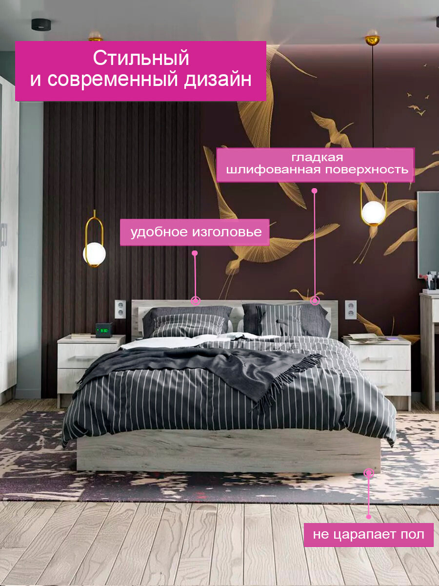 Кровать 1.6х2.0 двухспальная с основанием серый графит/дуб крафт золото ЛДСП/ДСП 18 918 ₽