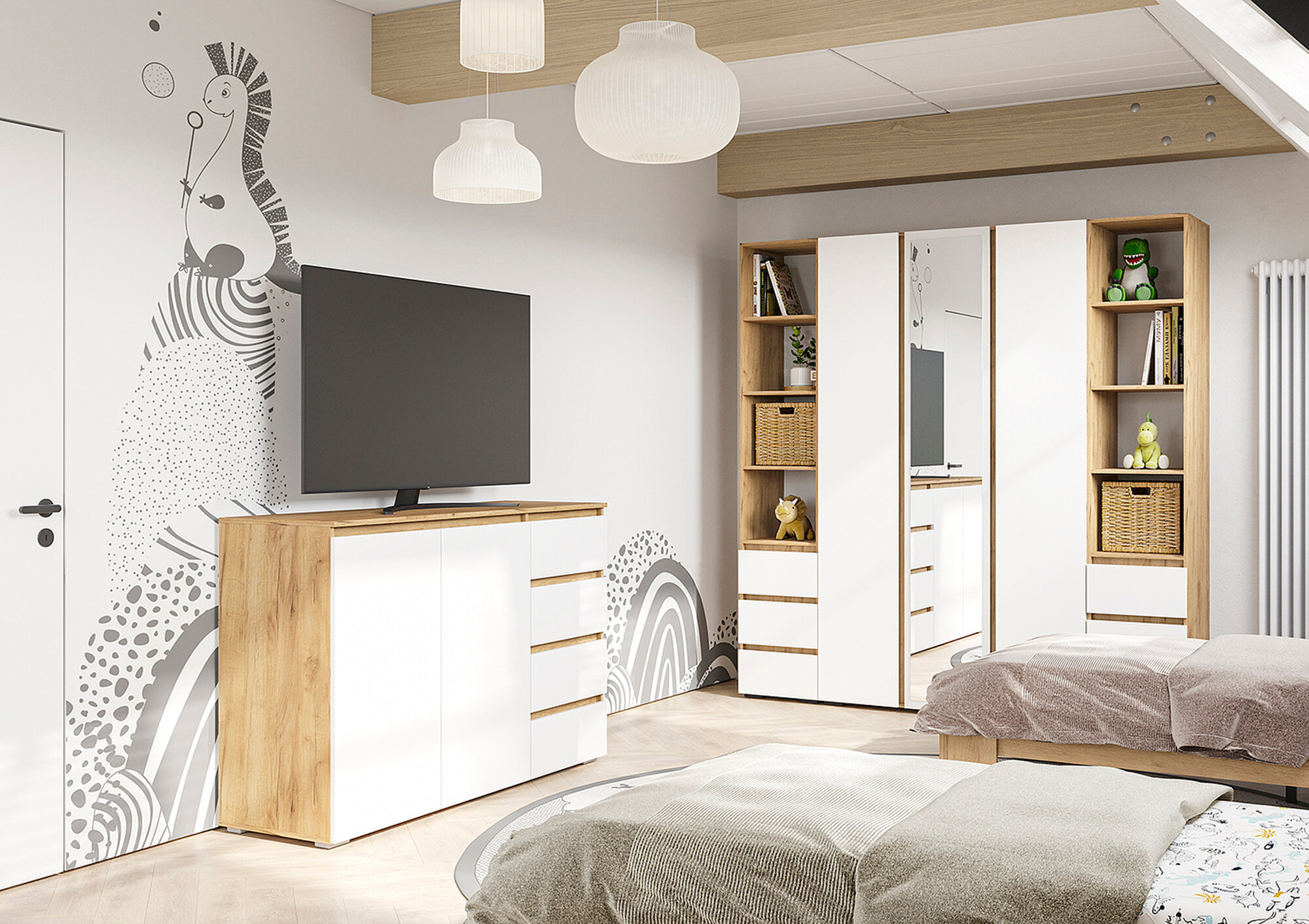 Кровать 90х200 односпальная с ящиками, Гармония КР 608, Дуб Крафт Белый / Дуб Крафт Серый
