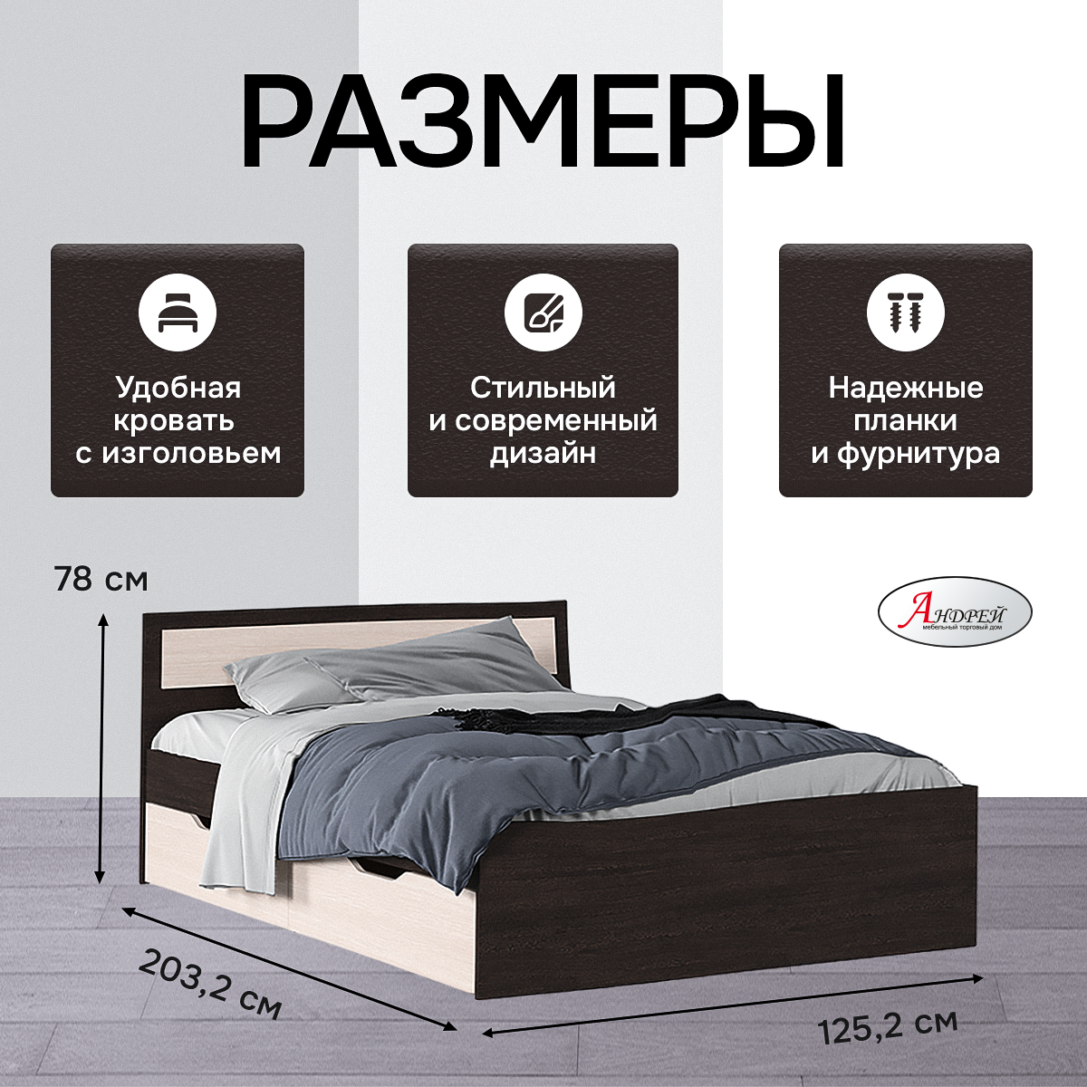 Кровать деревянная, габаритный размер: 1252x700x2032 мм. Спальное место: 1200х2000 мм. Корпус: ЛДСП венге, фасад: ЛДСП дуб Белфорт. 8 693 ₽