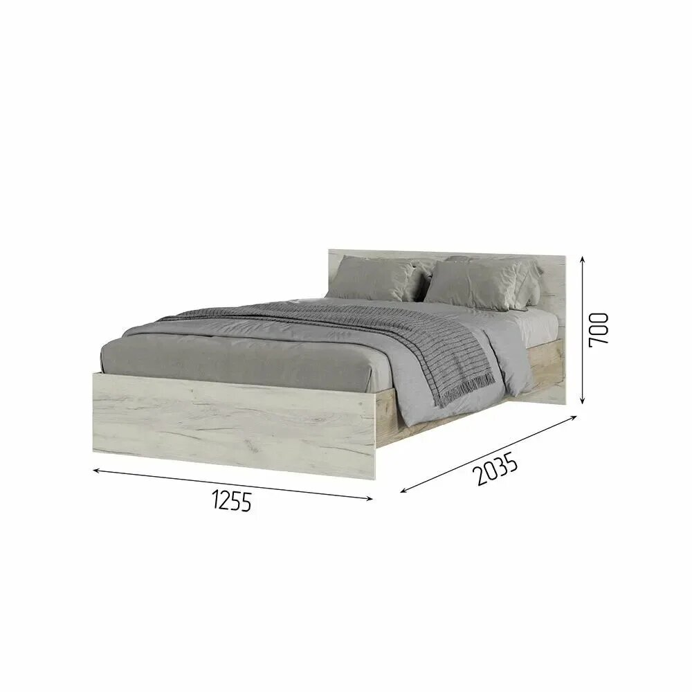Кровать односпальная КР 556 «Бася» ЛДСП 120х200, дуб крафт серый/дуб крафт белый (1252х2032х700) информация: