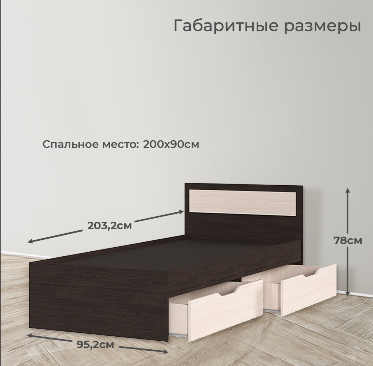 Кровать деревянная, габаритный размер: 952x700x2032 мм. Спальное место: 900х2000 мм. Корпус: ЛДСП венге, фасад: ЛДСП дуб Белфорт 7 130 ₽