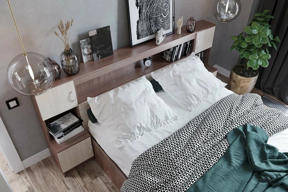 Кровать с закроватным модулем, габаритный размер: 2352x1024x2232 мм. Спальное место: 1600х2000 мм. Корпус: ЛДСП венге, фасад: ЛДСП дуб Белфорт 20 341 ₽