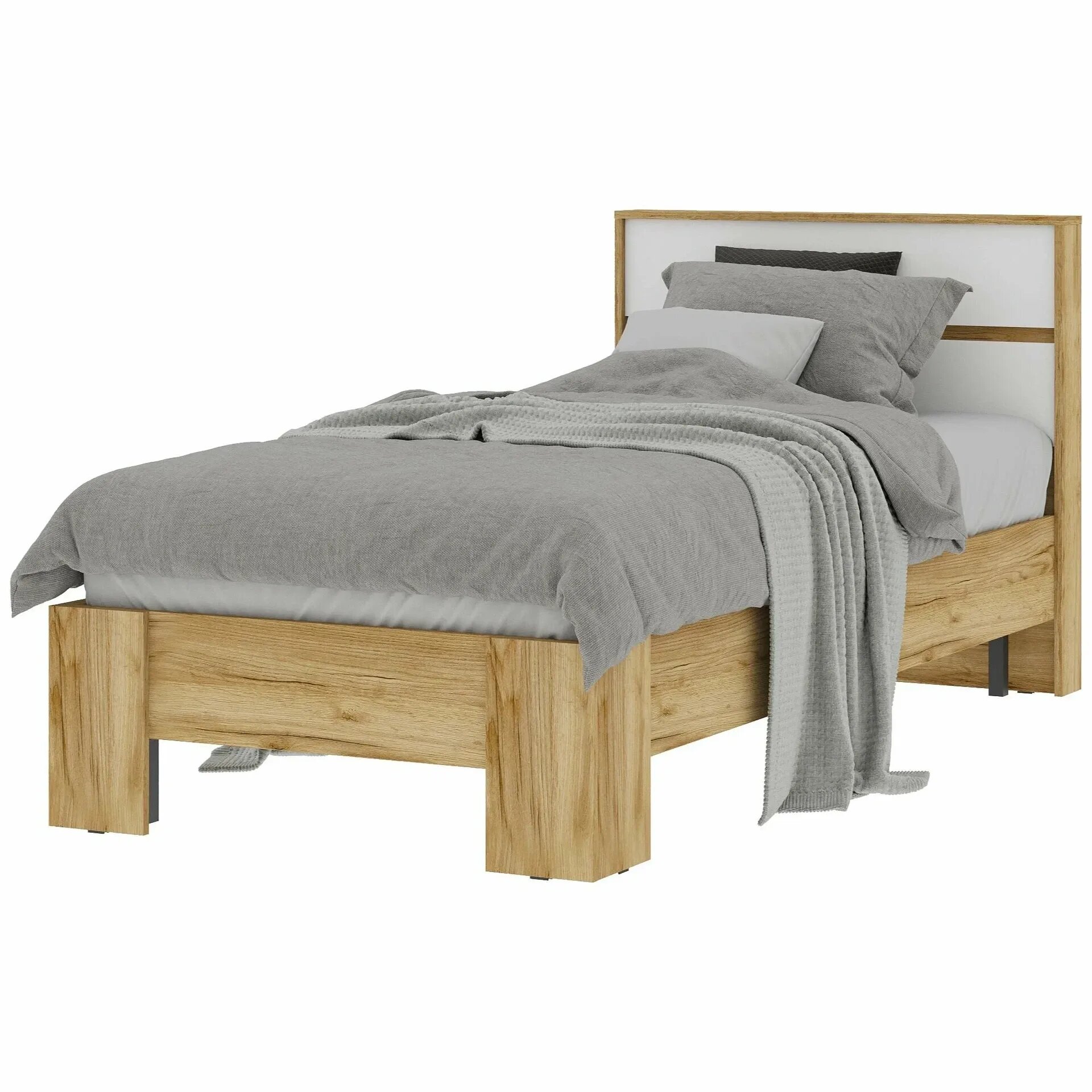 Кровать односпальная , спальное место 90*200 см, ЛДСП, цвет- белый/дуб крафт золотой 13 435 ₽