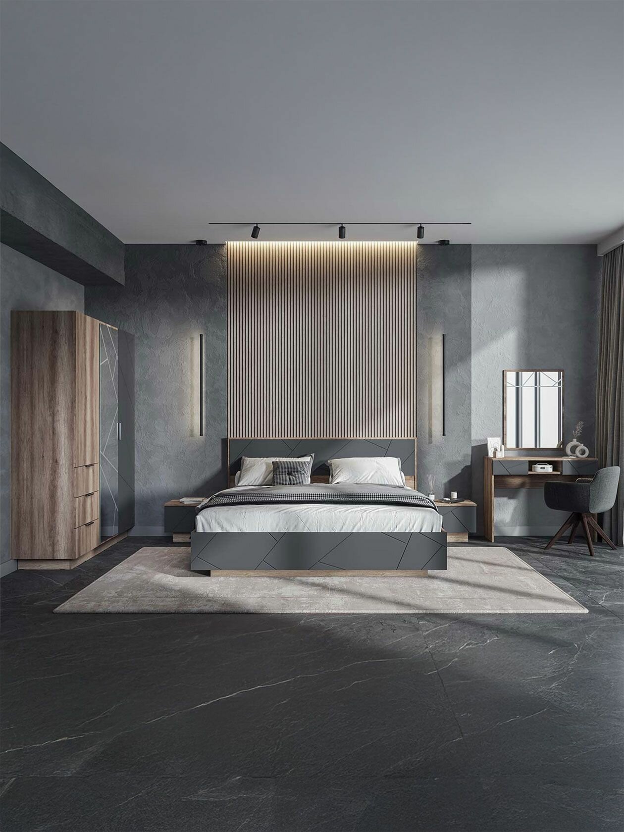 Кровать двуспальная Даллас Дуб Каньон / Софт графит 160х200 см информация: