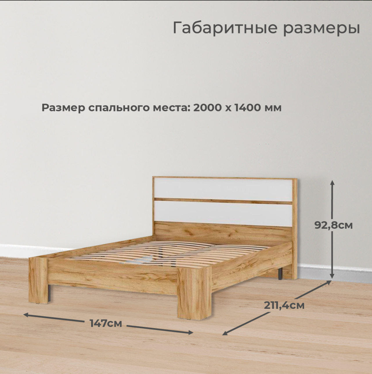 Односпальная кровать с изголовьем, габаритные размеры: 1452x700x2032 мм, спальное место: 1400x2000 мм. Корпус: ЛДСП дуб Крафт серый, фасад: ЛДСП дуб Крафт белый. 9 254 ₽