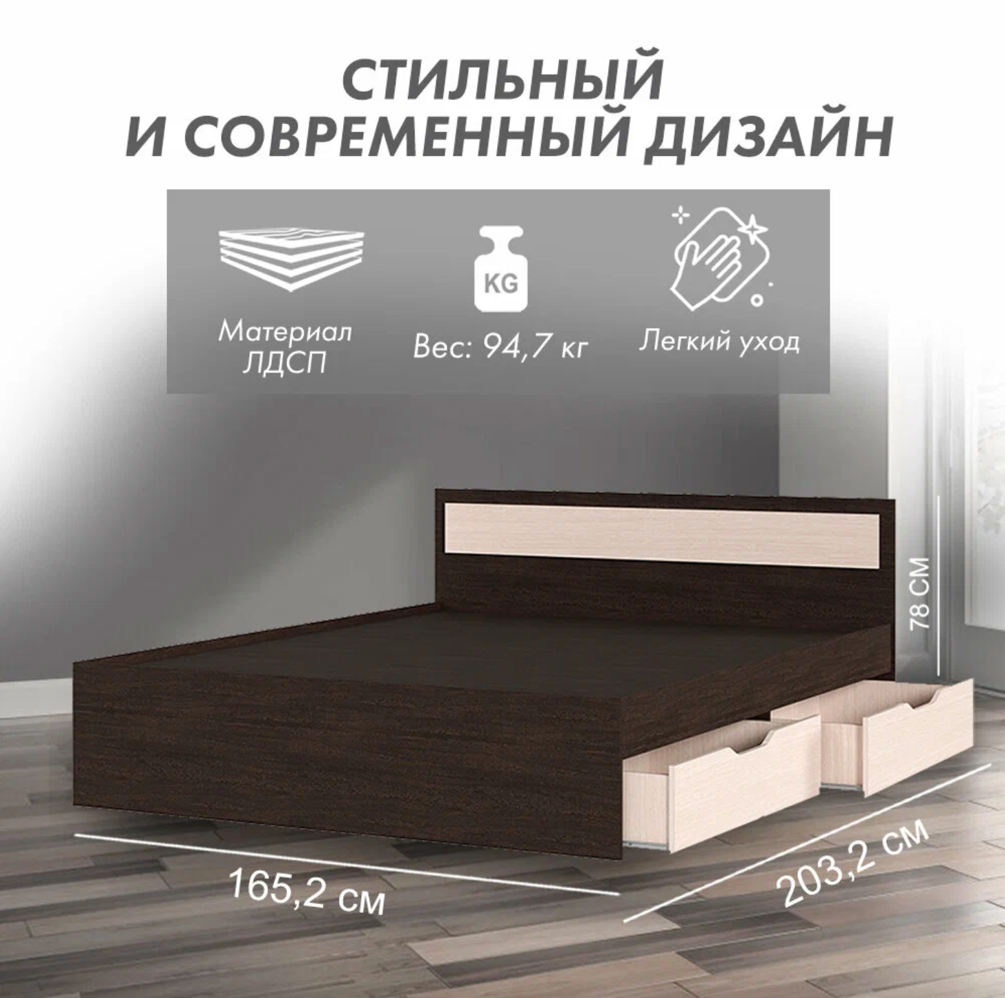 Двуспальная кровать с ящиками Стендмебель, Гармония КР 605, 145х203х78см, венге-белфорт