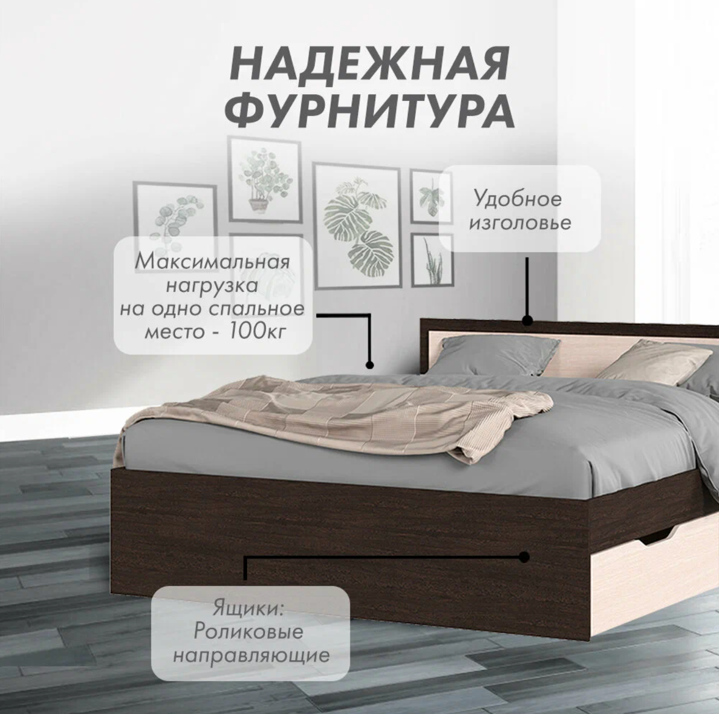 Кровать Гармония КР 605 с ящиками, ЛДСП, венге/белфорт, 140х200 см 21 400 ₽