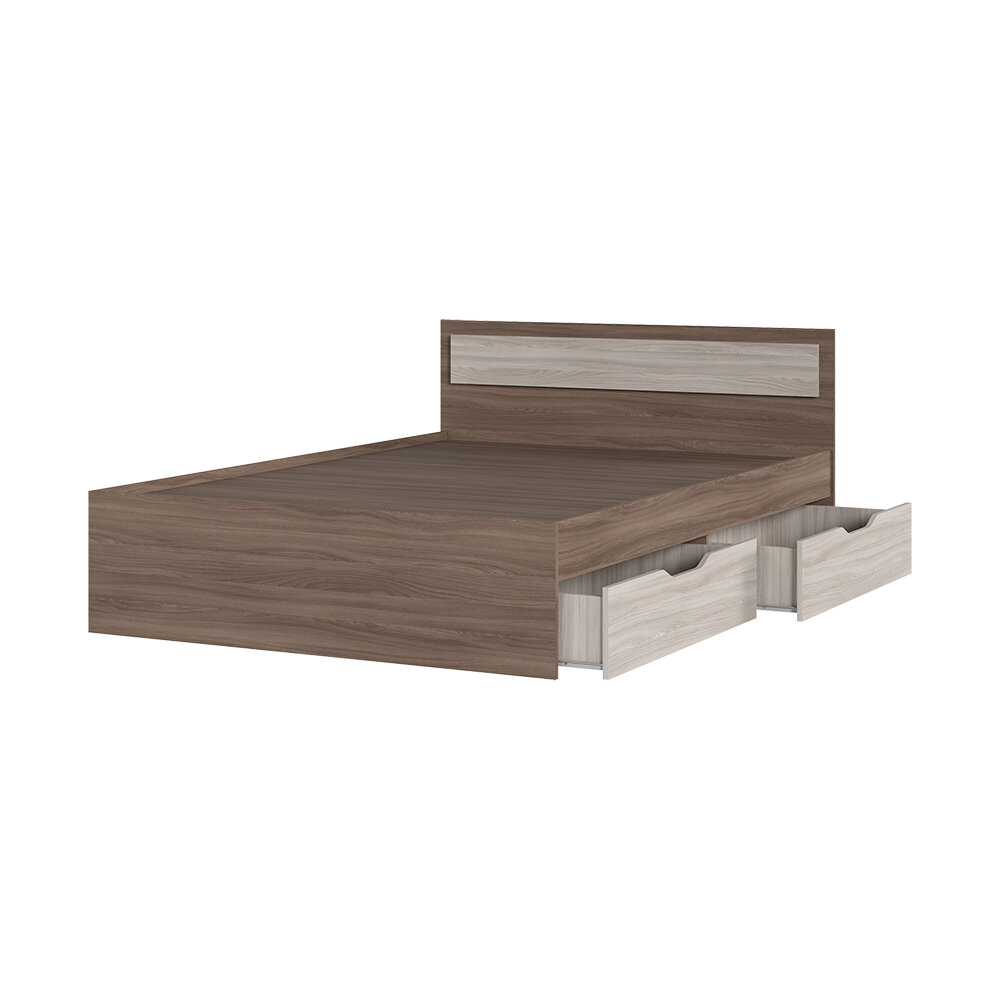 Двуспальная кровать с ящиками Стендмебель, Гармония КР 605, 145х203х78см, ясень шимо темный-светлый