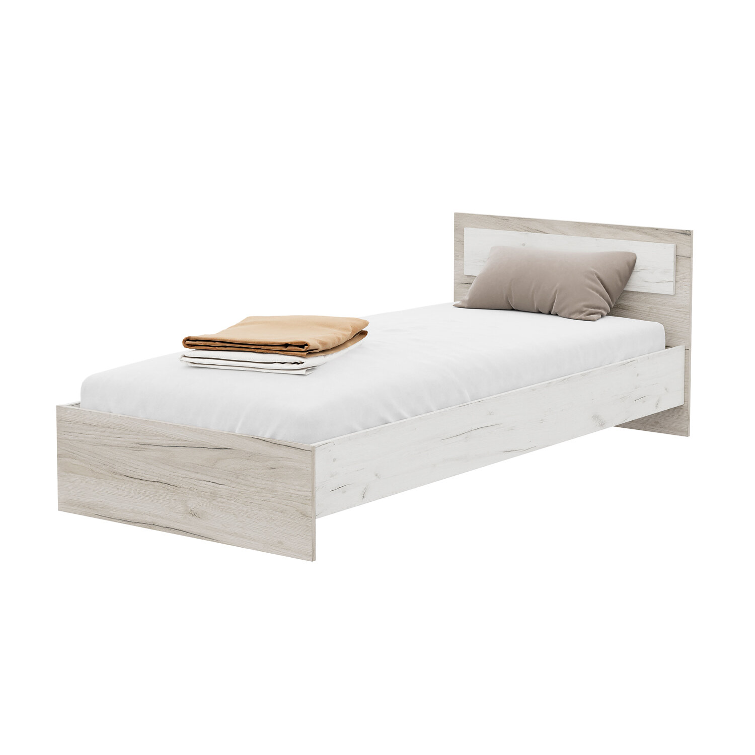 Односпальная кровать, габаритный размер: 952х700х2032 мм, спальное место: 900х2000 мм. Корпус: ЛДСП дуб Крафт серый, фасад: ЛДСП дуб Крафт белый. информация: