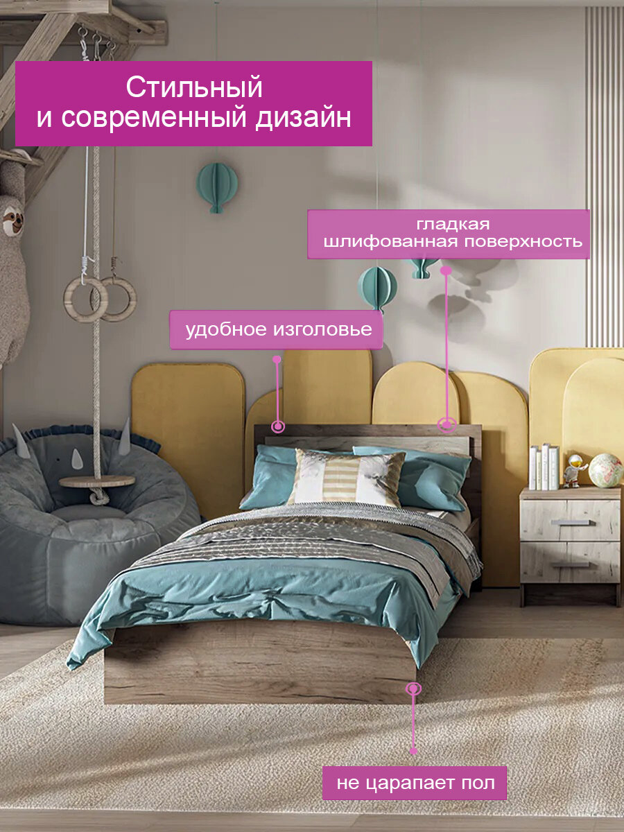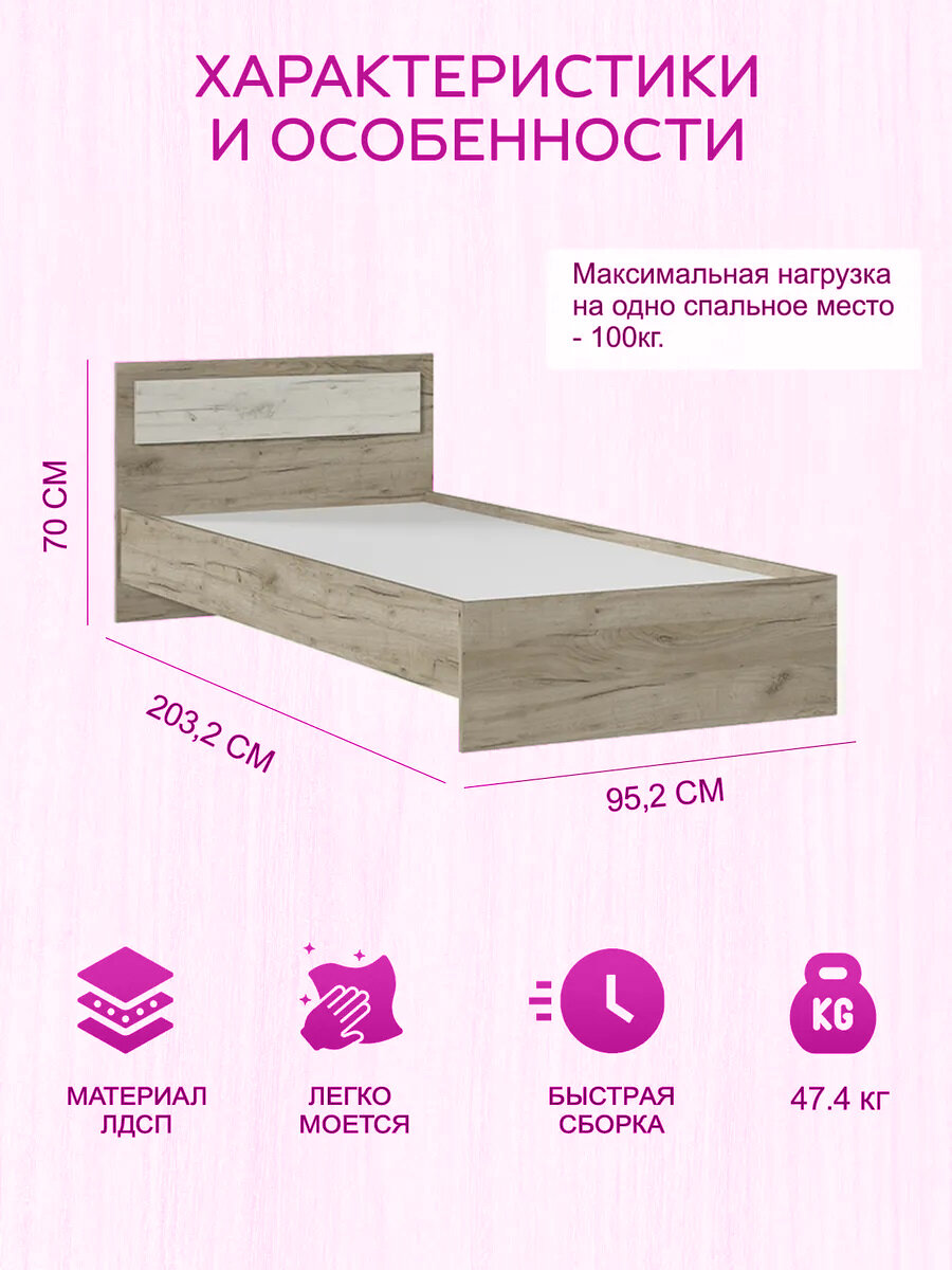 Отзывы на Односпальная кровать, габаритный размер: 952х700х2032 мм, спальное место: 900х2000 мм. Корпус: ЛДСП дуб Крафт серый, фасад: ЛДСП дуб Крафт белый.