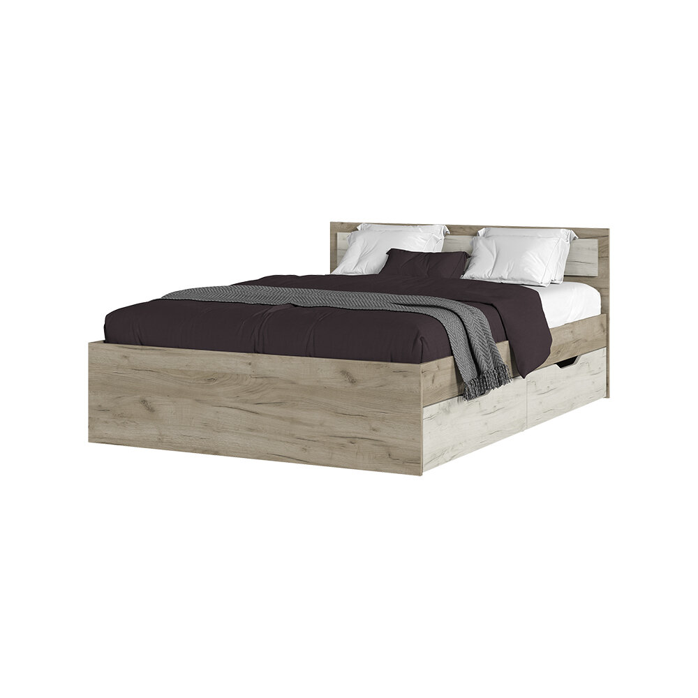Кровать 140х200 полутороспальная с ящиками, Гармония КР 605, Дуб Крафт Белый / Дуб Крафт Серый